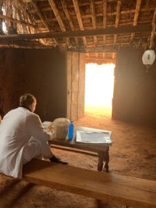 Vid några tillfällen i veckan åkte ett gäng från sjukhuset ut i ‘’kliniker’’ som de byggt upp utanför byn, dit folk som bor längre ifrån sjukhuset kan komma och utföra hälsokontroller. Här driver de främst mödravård och barnavård i form av vaccinering och viktuppföljning av barn men också uppföljning av mödrarnas graviditeter. Här märktes en enorm tacksamhet från befolkningen att sjukvårdspersonalen tog sig tid att åka ut i de mindre ‘’klinikerna’’. Det bildades långa köer och vi fick väga uppåt hundra barn vid ett tillfälle när vi åkte ut. Under dessa resor utanför byn hade personalen dessutom med sig lite olika varor de kunde sälja till dem som kom för undersökning. Det kunde vara allt från tvål till potatis.